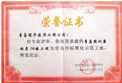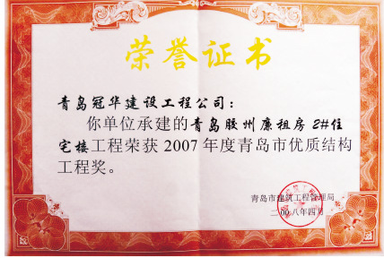青島市2007年度優(yōu)質(zhì)結(jié)構(gòu)工程獎(jiǎng)