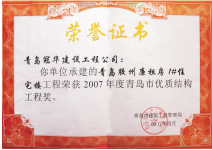 2007年度青島市優(yōu)質(zhì)結(jié)構(gòu)工程獎(jiǎng)