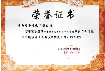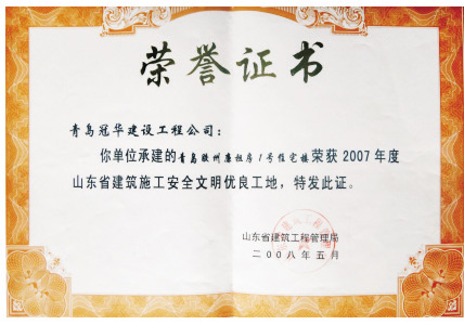 2007年度山東省建筑施工安全文明優(yōu)良工地