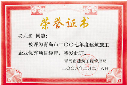 安太寶 青島市2007年度建筑企業(yè)先進個人