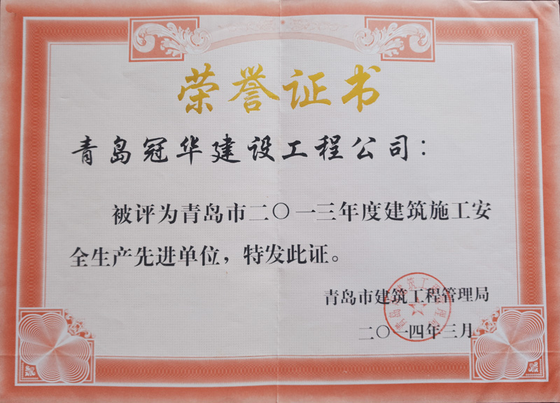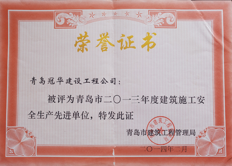 青島市2013年度建筑施工安全生產(chǎn)先進單位