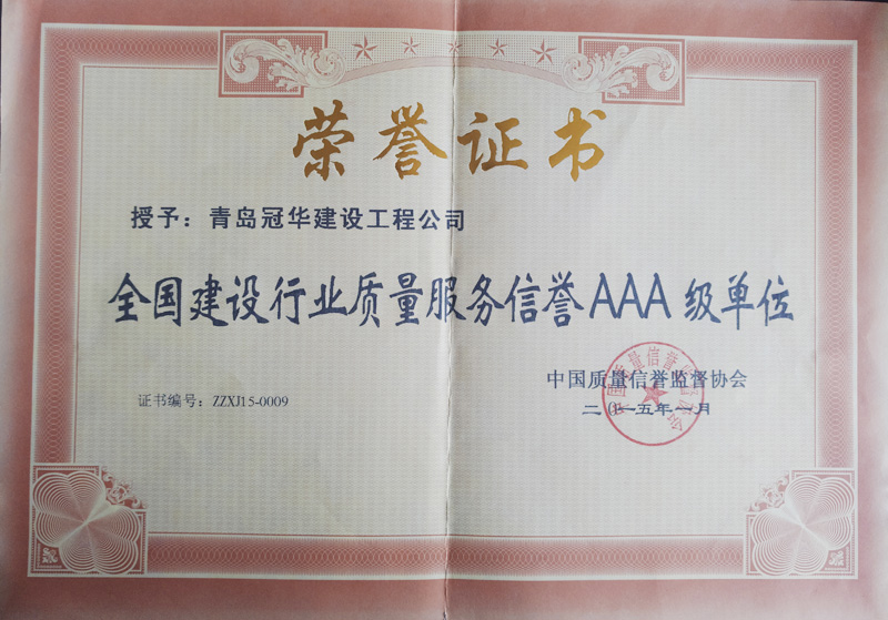 2015全國建設(shè)行業(yè)質(zhì)量服務(wù)信譽AAA級單位