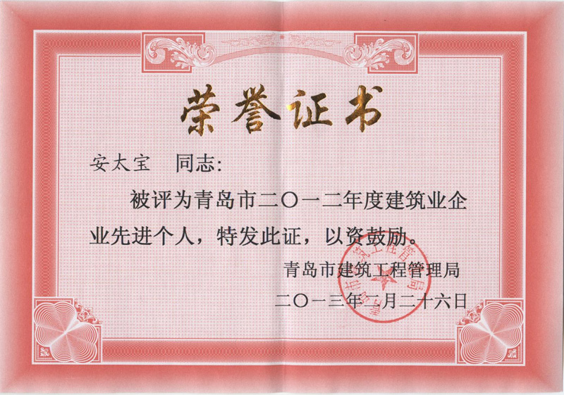 安太寶-青島市建筑業(yè)企業(yè)先進(jìn)個(gè)人