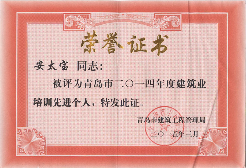 安太寶-青島市建筑業(yè)培訓(xùn)先進(jìn)個(gè)人