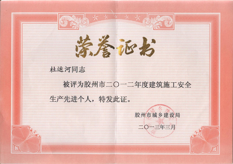 杜運(yùn)河-膠州市建筑安全施工安全先進(jìn)個(gè)人