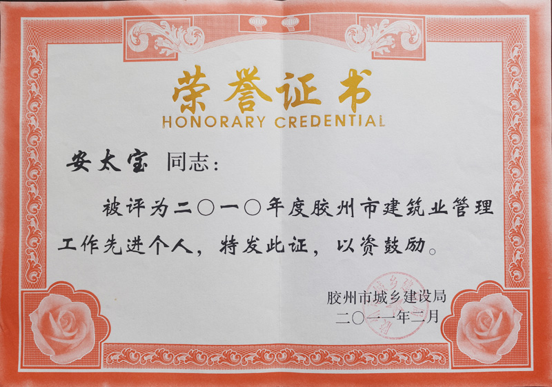 安太寶-膠州市建筑業(yè)管理工作先進(jìn)個(gè)人