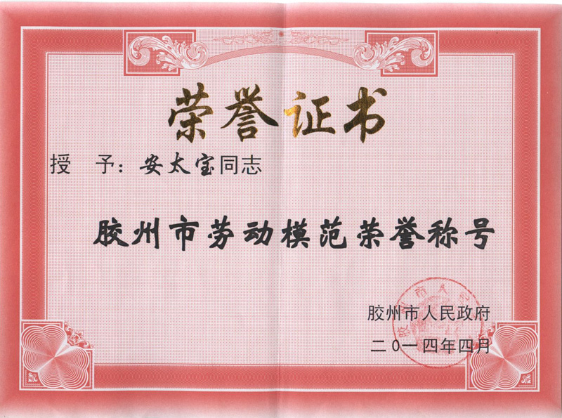 安太寶-膠州市勞動模范榮譽(yù)稱號